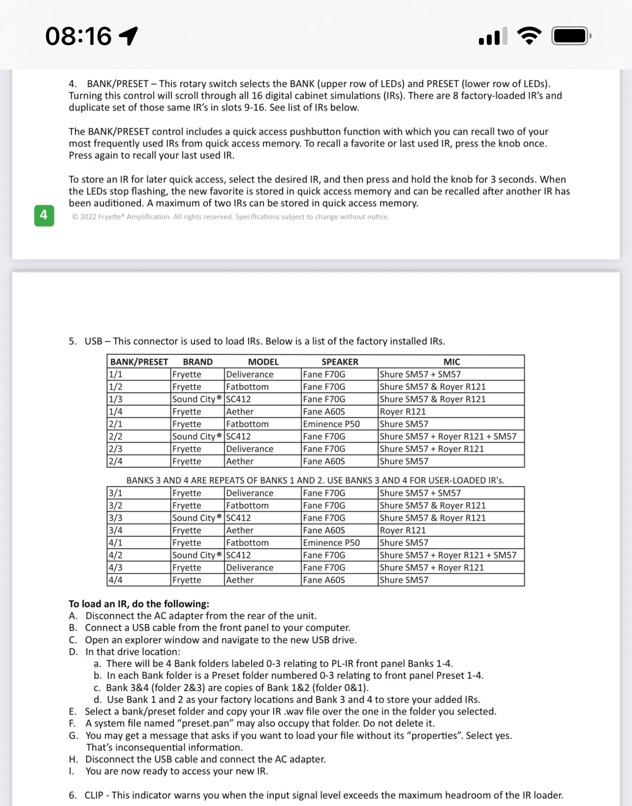 I suspect the way to operate the IR Loader is to scroll through the IR selection with the switch, and then press in the Switch to make the selection.