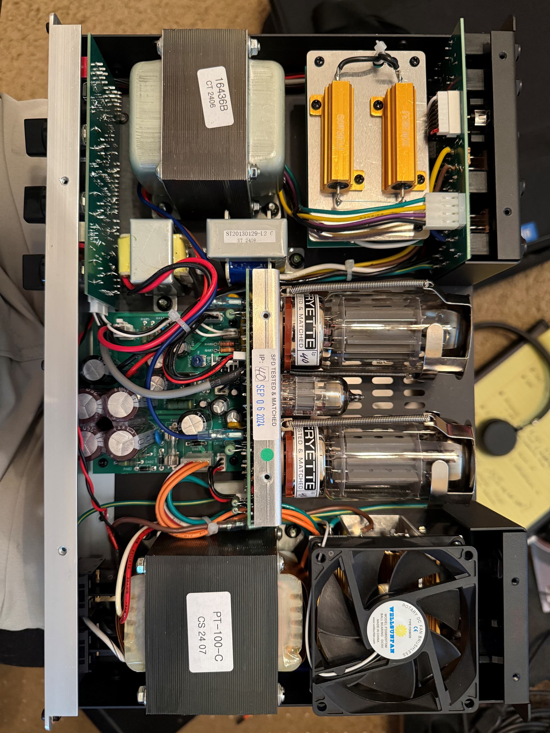 A tube or tubes are likely bad. We cover the tubes for 90 days so this one is passed that mark. I would recommend changing out the tubes and the fuse. If something else is occurring past that, we can definitely get it in here for service. The tubes we use are JJ 6550 and a JJ 12DW7 in the PS-100. You may not need to change the 12DW7 PI tube at all. So just changing the Power Tubes should be good.