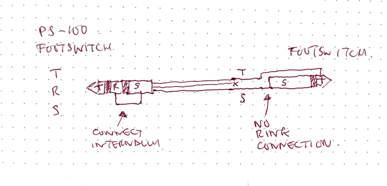 Now imagine connecting a TRS jack to the Footswitch input on the PS-100 that is wired up the following way: