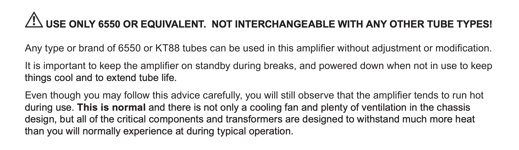I checked the manual currently online. It says only replace the power tubes with 6L6. The text copied above says 6550 or KT88. My unit seems to be a bit louder with the KT88s over the original 6L6 I removed. Is it safe to run it with KT88s? Should I pull them and go back to 6L6 tubes?