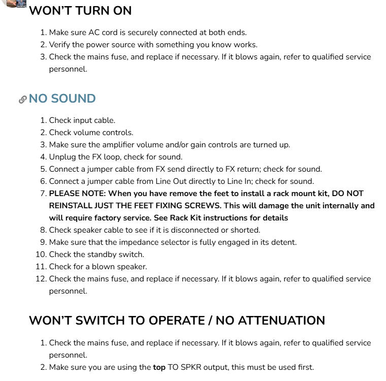 Followed the guidelines. And formatted all nice and pretty. Had all of the fields that were applicable. I was not requesting warranty work. I didn’t put a forum post url?..because, 99% sure a forum post will not fix it. I am just asking to send it back to have it gone through and worked on. I didn’t want to search around for an amp tech that may be able to start from scratch to figure it out. I guess I can plug it back in and see it it works again. Although, that will not make me feel warm and fuzzy inside if it did come back. I would just have to start the process all over again. Ya know? Just figured I would get it done right the first time.